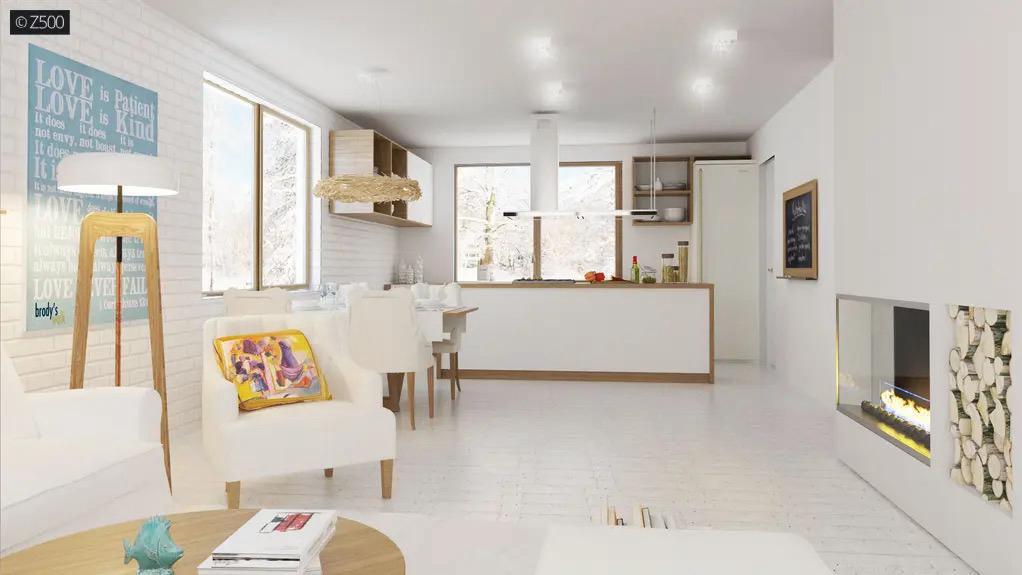 Strefa dzienna: salon, jadalnia, kuchnia z wyjściem na taras + spiżarnia