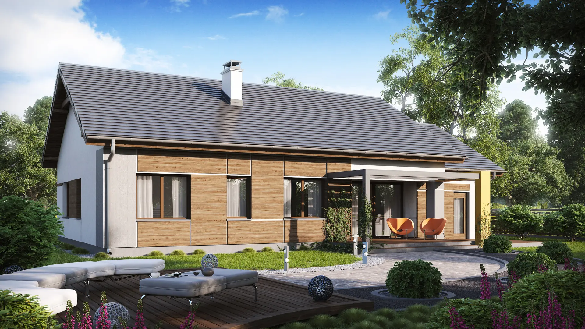 Dodatki: przedsionek,hol,WC, pom. gospodarcze, garaż, schowek ogrodowy