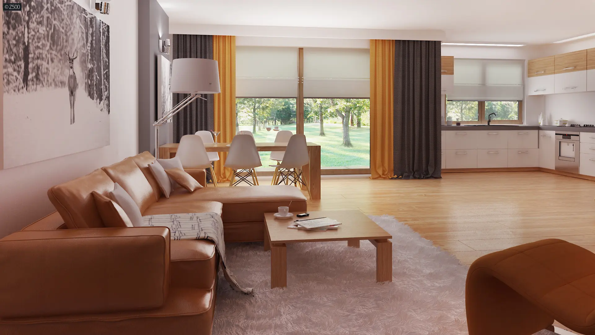 Strefa dzienna: salon, jadalnia, kuchnia z wyjściem na taras + spiżarnia