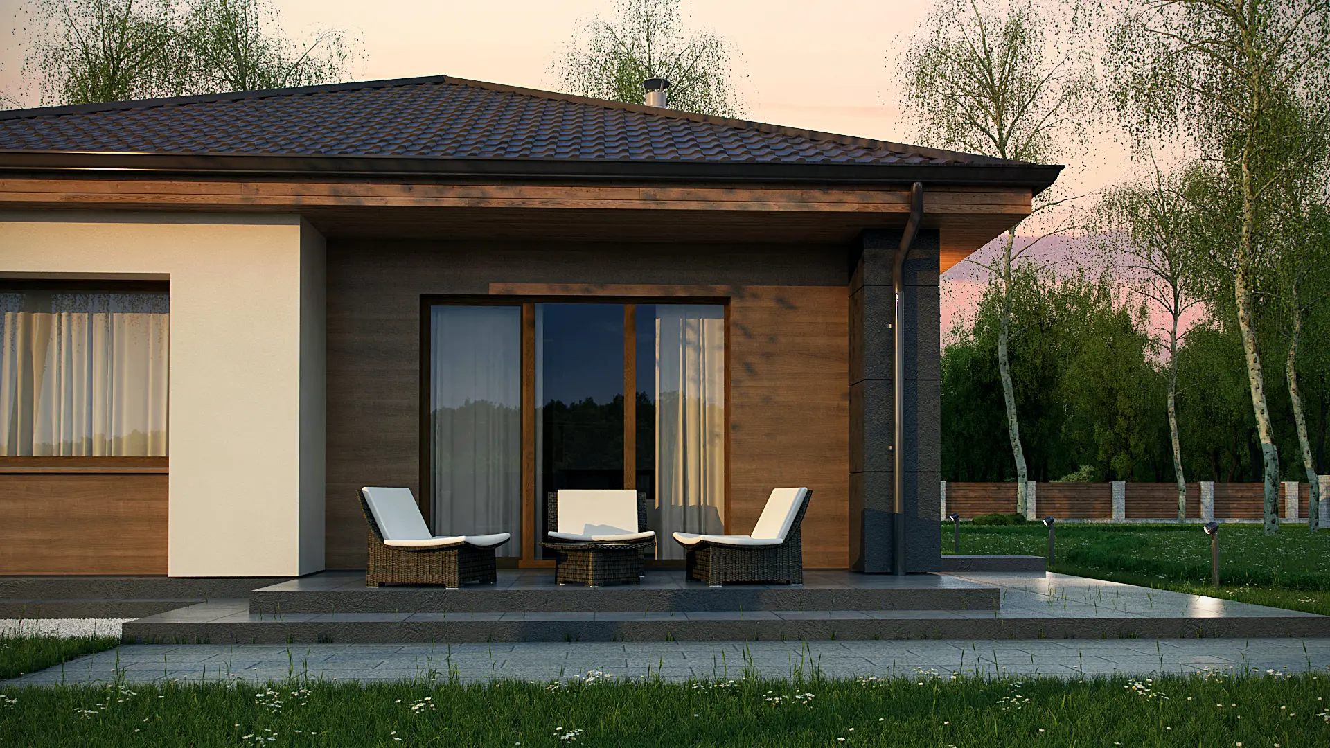 Elewacja: tynk wapienno-cementowy typu „baranek” – biały w standardzie, inny kolor z palety RAL za dopłatą