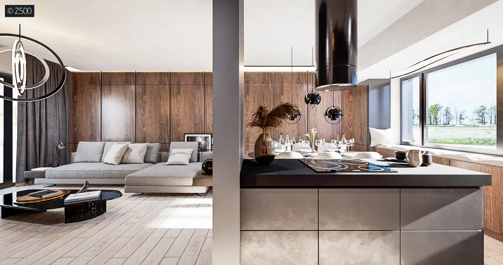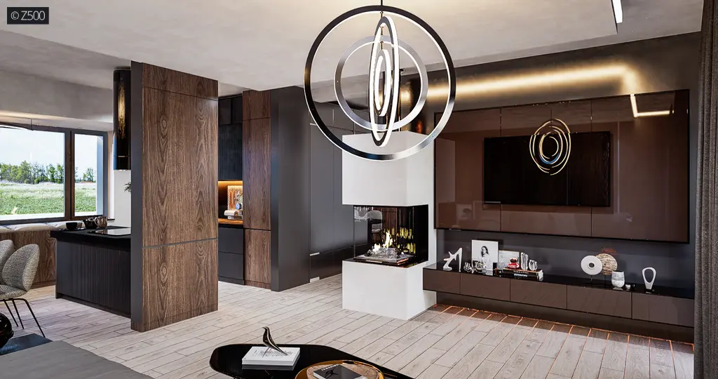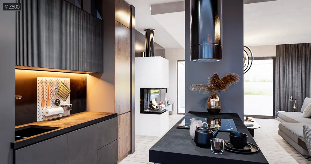 Strefa dzienna: salon. jadalnią, kuchnią ze spiżarką
